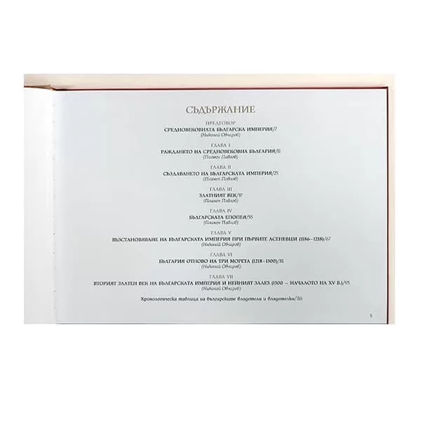 120 страници, в които Историята на България от средните векове е поднесена синтезирано и изключително увлекателно. В края й е приложена хронологическа таблица на българските владетели и владетелки. Онагледена е с карти, фотоси и картини на знакови за историята ни битки, царе и царици.